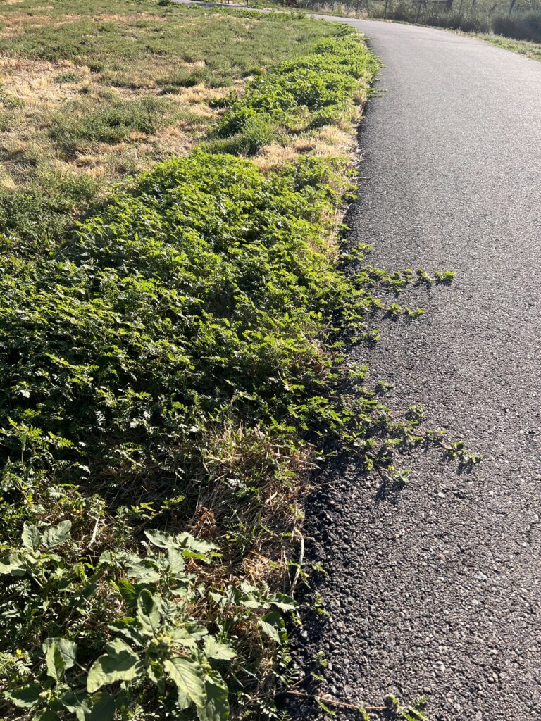 Our community gathered together on the National Day of Service to pull weeds and lay bark along the Dry Creek Trail and city-owned land. Because of the neglect of this area, puncture vines crawl along the sidewalks and trails preventing access and causing harm to tires, people, and animals – it is not easy to pull these painful, prevalent weeds out of the dry ground and it took hours of labor, but together we were able to clear two sections of the trail.