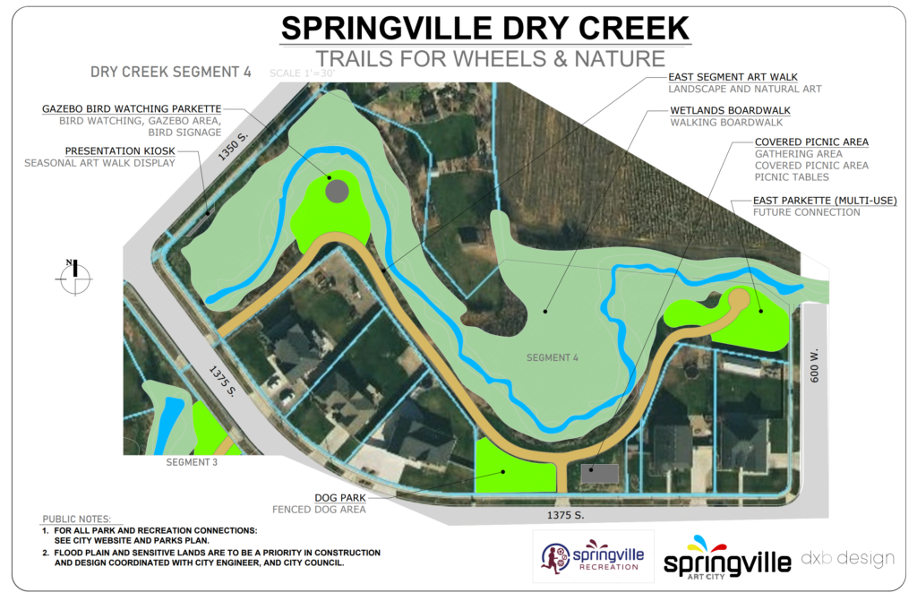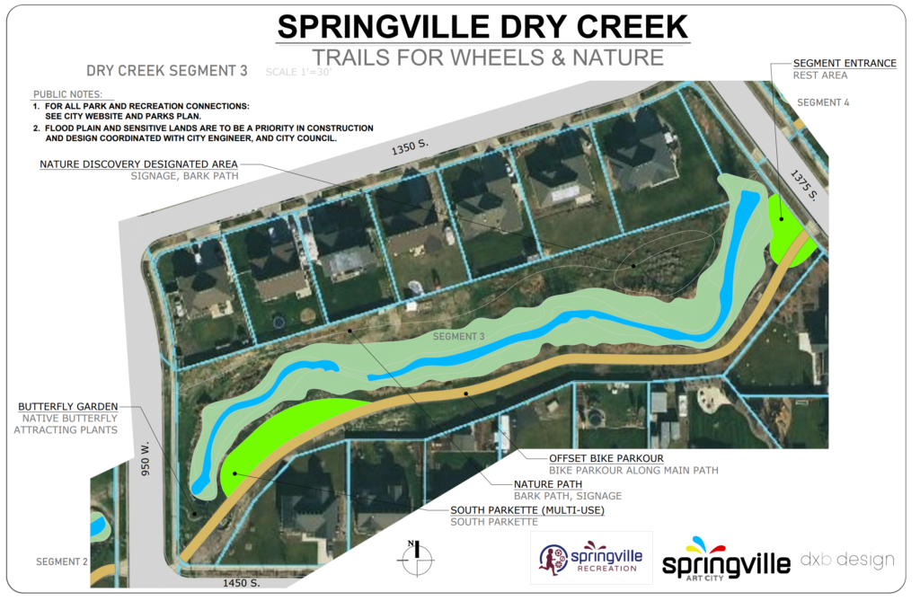 Stacey Child (The Parks and Rec director) is meeting this week with the designer for the Riverwalk project along 100 South.  She wants to see how this designer does on Riverwalk and if she likes what he’s done, she will talk to him about the Dry Creek Trail to see if he is willing and able to tackle this project.